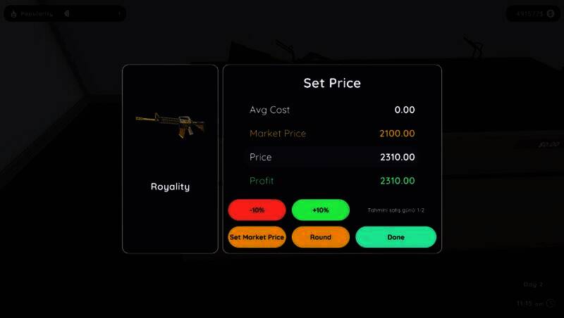 玩家能租赁各类枪支并销售适配的弹药包。随着等级上升,会解锁新的枪支和弹药类型,可丰富商店货品,出售手枪、冲锋枪和步枪等。