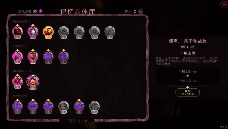 融合了生存模拟、角色养成与卡牌式技能搭配。局外成长系统“记忆晶体库”可继承解锁永久增益,如粮食上限提升、新装备槽。不过初期高难度设计让玩家需通过多周目积累优势,形成“越失败越强大”的循环逻辑。