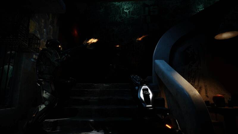 游戏以第一人称视角为核心,玩家可通过定制化外骨骼系统实现超人类战斗能力,例如利用电磁脉冲瘫痪敌方设备,或通过环境扫描定位敌人位置。外骨骼还赋予玩家高速移动、重型武器携带等战术优势。