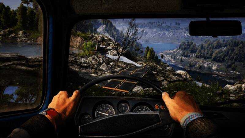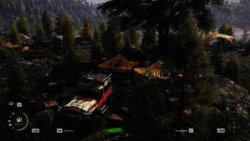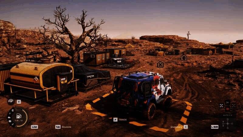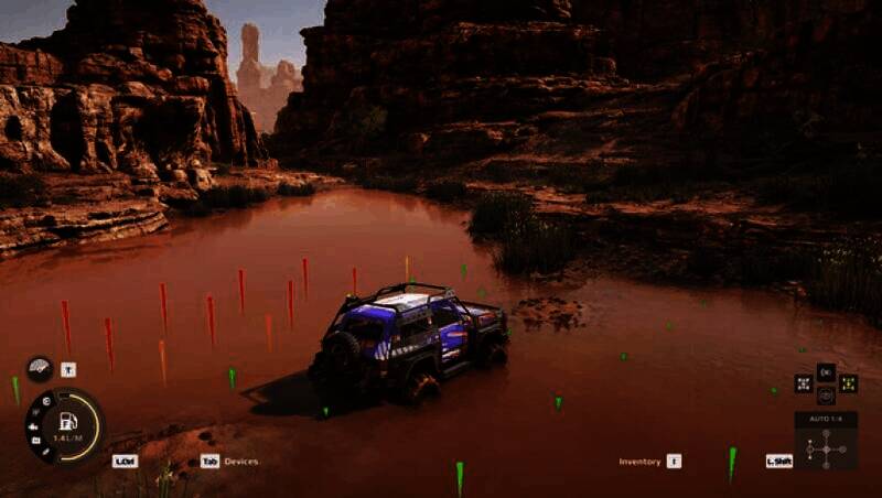 支持手动换挡、差速锁调节等专业操作,车辆的重心、轮胎抓地力等物理参数高度逼真。在面对沼泽、浅滩等复杂地形时,玩家需动态调整胎压、切换驱动模式,甚至使用绞盘拖拽树木或锚点来脱困。“动态车辆损耗”系统要求玩家实时监控油耗和部件耐久度,防止因过度磨损导致任务失败。
