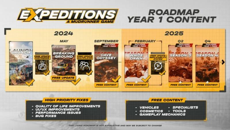 支持四人联机合作,队友间可共享工具与车辆,如多人协同拖拽重物跨越陡坡。游戏采用季度更新模式,第一季新增洞穴环境、两款新车及专家角色,后续将推出“沙漠金字塔”“极地冰川”等主题内容。