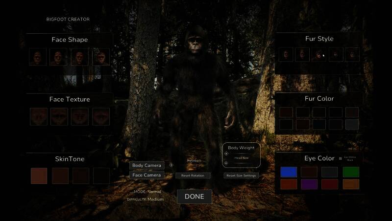 游戏具备三种模式:正常、生存和自由漫游。玩家可以自定义游戏中大脚怪的外观,自由地探索森林。此外,游戏还带有动态天气系统,能让玩家体验四季森林,应对不同的生存挑战。