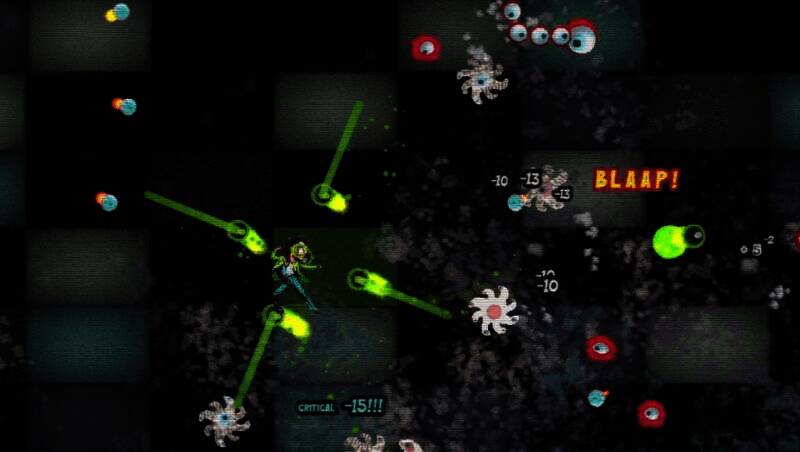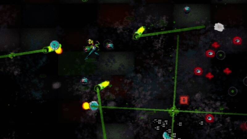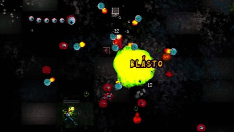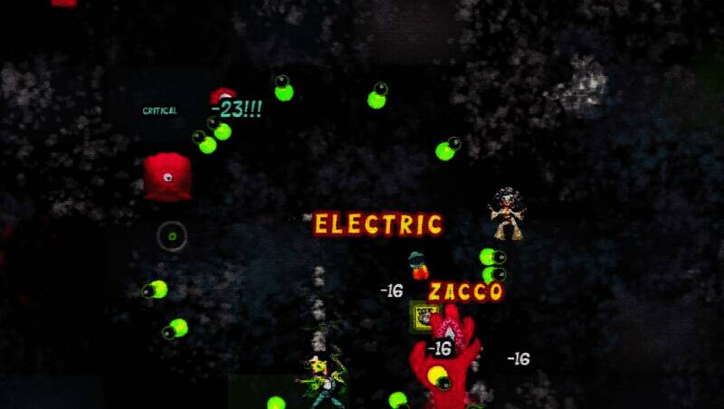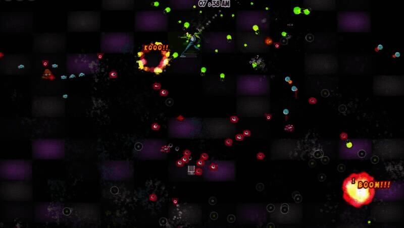 《午夜迪斯科》属于快节奏的自上而下双摇杆射击类游戏。玩家要在被丑陋外星眼球怪物侵占的舞池中努力生存,通过消灭敌人收集黑胶唱片来升级技能书,也能从宝箱中获取强大道具。