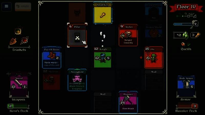 玩家将在随机生成的高塔或地下城中进行探索,会遇到不同的房间布局、怪物和陷阱。在探索过程中,玩家可以收集黄金等财宝,并访问商店来改善自己的装备和牌组。
