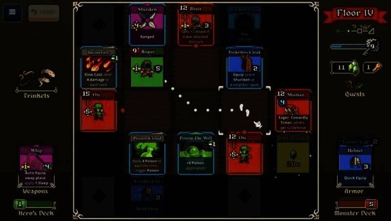 卡组中的卡牌会对房间布局产生影响,使得每次游戏的探索体验都截然不同,极大地增加了游戏的重玩价值。