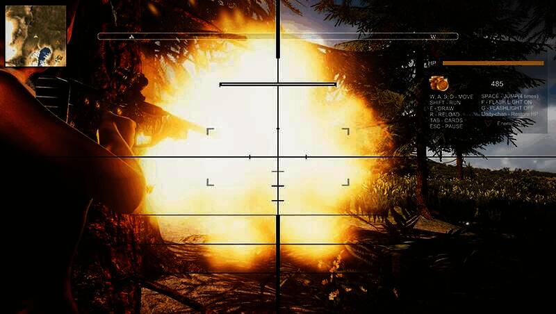 这是一款TPS游戏,玩家的主要武器是步枪,子弹数量无限,但每次射击后都需重新装填。游戏目标是解放所有村庄并获得5张藏宝卡。游戏面积达1公里见方,还有原创音乐作品,其中包含元小说言论,熟悉独立游戏的玩家能获得更多乐趣。