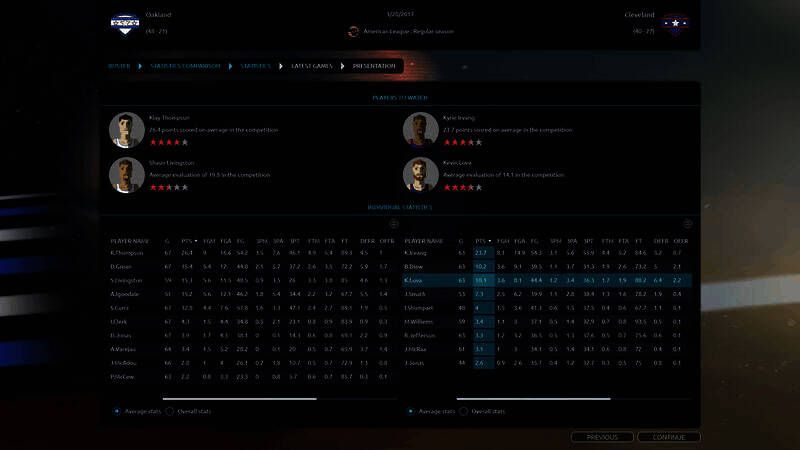 - **海量数据支持**:玩家可获取个人和团队的海量统计数据,用于管理进度,如检查球员身心状态、评估职业生涯、回顾比赛档案,还能比较球员。