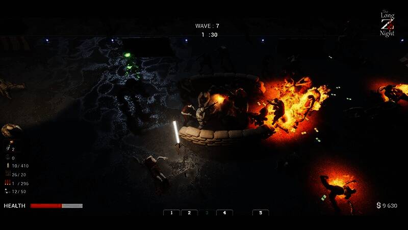 Long Z-Night由Steel Rat, MishGun精心制作,是一款极具特色的上帝视角动作射击游戏。玩家需在防御阵线上坚守,抵御一波又一波的丧尸潮。游戏属于典型的僵尸防守射击类型,拥有丰富多样的武器装备与酷炫的游戏画面。玩家既能直接射击僵尸,也能布置地雷陷阱诱敌,还可借助自动机炮协助防守。