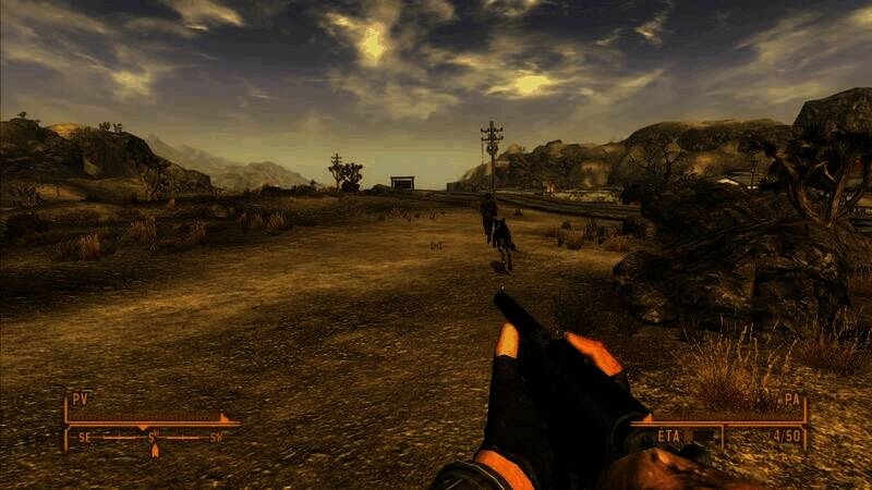 游戏画面采用了《辐射3》的引擎,在部分表现上和前作相似却又独具特色。游戏开场,玩家所扮演的邮差遭受袭击,几乎丧命,并且可以在第一人称和第三人称视角之间自由切换。游戏里的支线任务极为丰富,报酬不输给主线任务,解决任务的方式也多种多样,还会影响不同阵营对玩家的好感度。此外,游戏音乐带有怀旧风格,营造出浓郁的西部片氛围。