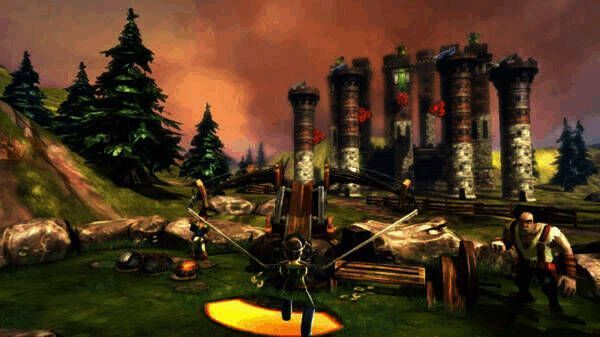 在游戏设定的中世纪古王国里,玩家站在待摧毁的城堡前,靠近投石器,双臂前伸抓住弩,后退蓄力并瞄准目标,张开双臂发射炮弹,让城堡瞬间崩塌。随着炮弹命中,礼炮响起、同伴喝彩,玩家离完成国王任务更近一步。
