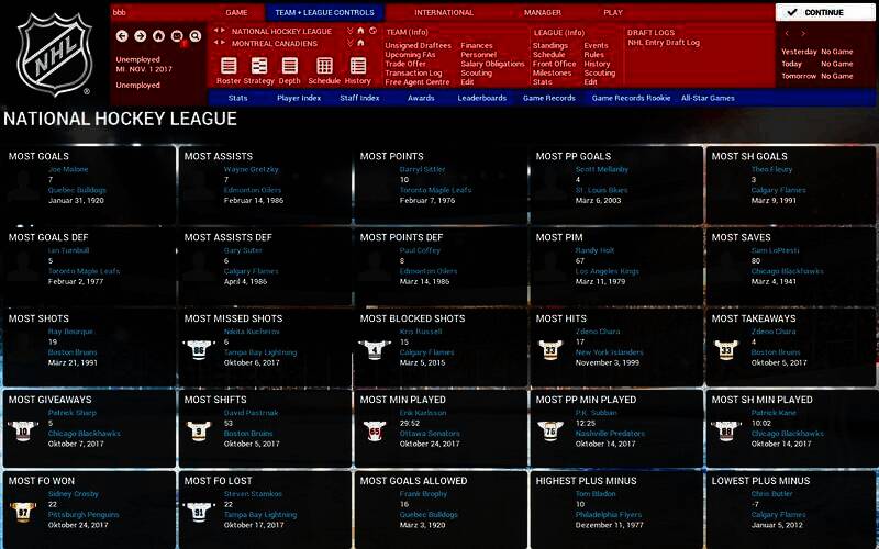 堪称有史以来最全面的曲棍球游戏,能查看1917 - 18赛季以来历史上真实详细的球员资料。