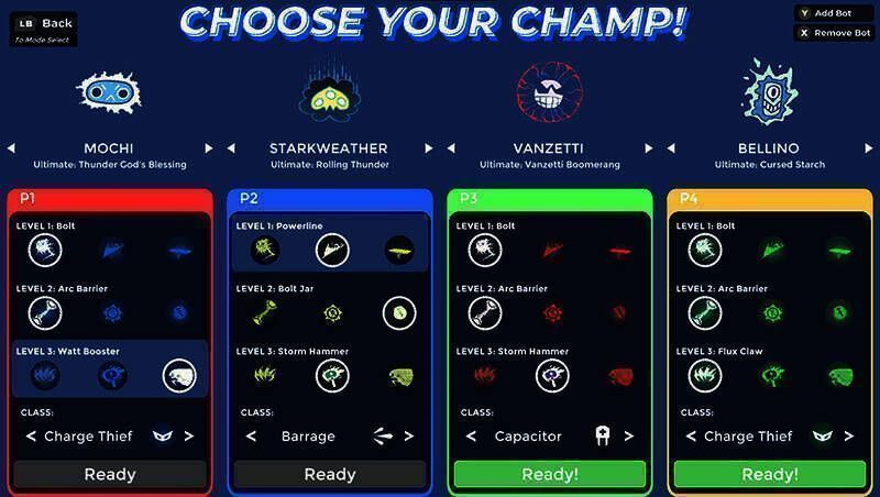 《冲锋陷阵(Charge Champs)》英文免安装版是由Spaghetti Yeti Studios制作并发行的多人2D平台格斗游戏。玩家能从多名角色里挑选一个,在与对手对抗期间为角色充电,进而释放强力技能抢占优势,打败所有对手成为冠军。