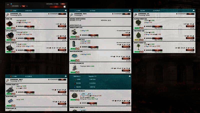 恢复现代社会、经济和军事结构是走向繁荣的关键。管理公民,建立强大机构,招募工人、拾荒者等,让定居点在各种事件中生存并发展。通过庞大研究树选择发展道路,解锁新建筑、技能和特权。