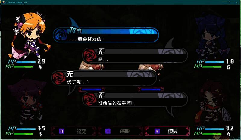 1、基本系统:游戏中总计7名女孩登场,玩家需发挥她们独特能力攻略关卡。与一般角色扮演游戏不同,参战的4名角色会主动发言,玩家从其意见中选一个决定行动,还能使用道具、替换角色。