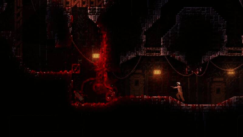 《Carrion》是一款像素风格的血腥暴力类冒险解谜游戏。玩家在游戏里将扮演无固定形体的外星人,凭借独特超能力追捕所见猎物。