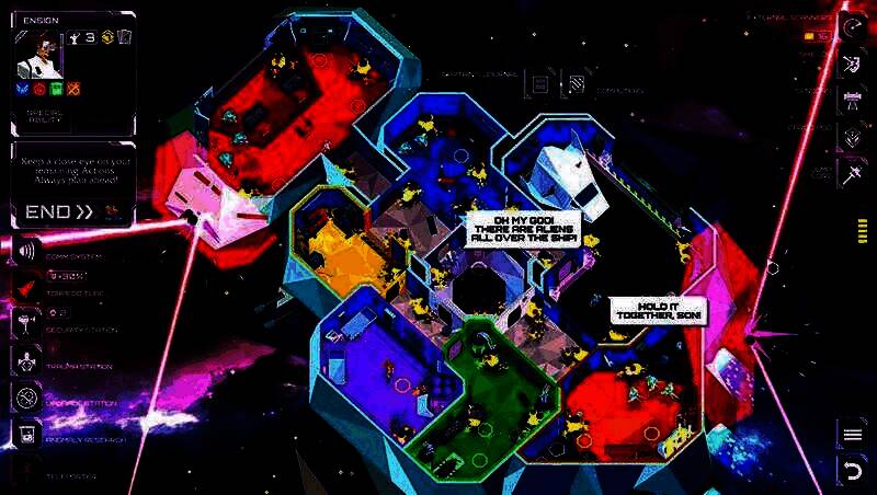 保卫飞船对抗未知外星克星,它们会不择手段把你炸成原子,好在有先进系统助力:舰桥可扫描威胁、修复护盾并与船员沟通;战争室里舰长留有紧急档案;军械库能用鱼雷摧毁外星飞船、激活自动炮塔击退登船者;CPU核心为船员技能提供动力;货舱能获取激光器等有用装备;医务室可治疗伤员;科学实验室能升级飞船、研究次空间异常;工程部能修复跳跃核心助你离开。