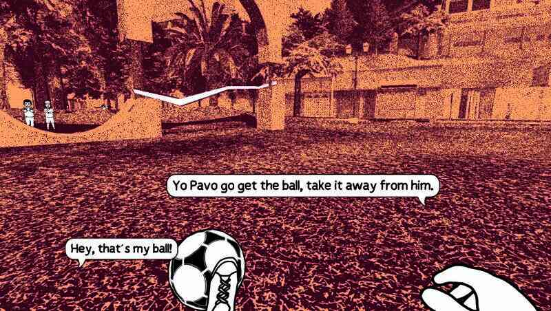 《despelote》是一款由Julián Cordero和Sebastian Valbuena联合开发、Panic发行的互动小说冒险游戏。游戏把故事背景设定在2001年厄瓜多尔首都基多,借助8岁少年朱利安的视角,生动展现了街头足球与城市生活相互交融的景象。玩家能以第一人称操控足球,在基多的街道和公园自由运球、传球,踢向路人还能触发趣味互动。