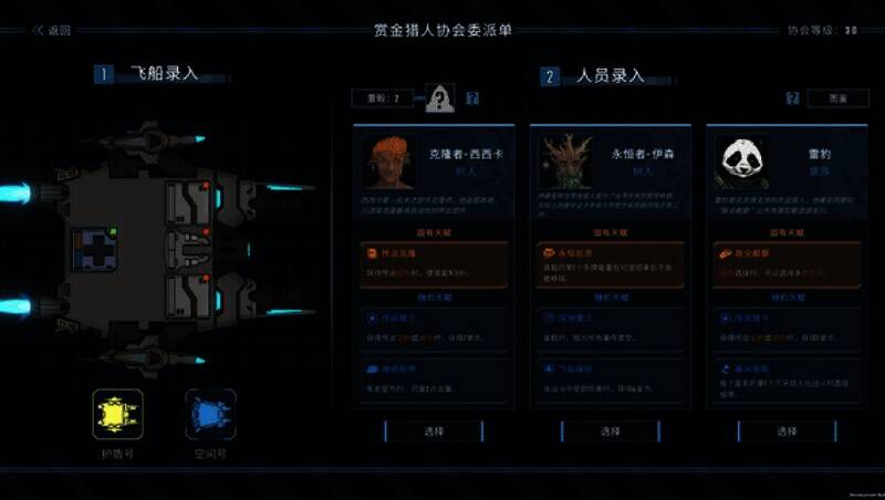 只要加入协会的猎人,协会就会免费提供宇宙飞船。目前协会有两艘风格迥异的飞船供猎人选择,第三艘飞船正在加急研发中,即将闪亮登场!每艘飞船都有自己的专长,并且拥有近百种专属部件。(边上不显眼的小字提醒:协会仅提供初始部件,其余部件需要猎人们在旅途中自行寻找获取。)