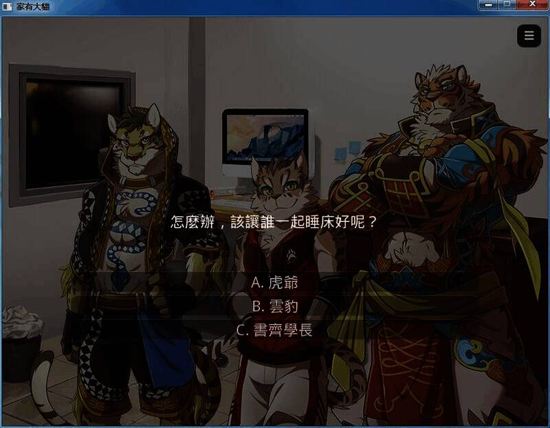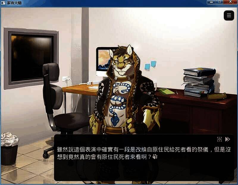 家有大猫免安装中文版是一款兽人同性向恋爱游戏,由家有大猫团队打造,于2017年11月13日在Steam平台发行。游戏以台湾民间信仰和原住民文化为题材,讲述普通大学生林天辽与三位猫科兽人神灵的奇幻故事。玩家以林天辽视角对话,通过选项推进剧情、影响好感度和结局。游戏有成就系统、特典剧情,画面立绘独特,音乐与剧情契合。