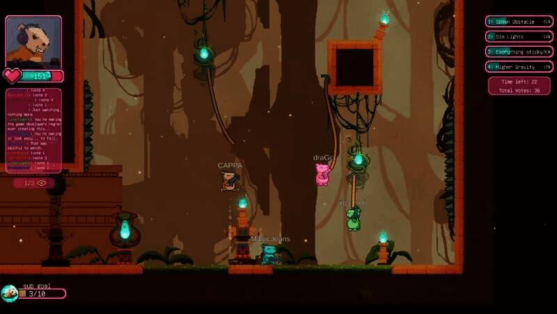 4、游戏可与Twitch观众无缝连接,让他们参与“混沌模式”投票互动。玩家不仅是在玩游戏,更是化身为游戏主播。玩家可发挥创意快速冲关,与好友在在线排行榜竞争,见证全球玩家争夺“最强水豚之王”的荣耀。