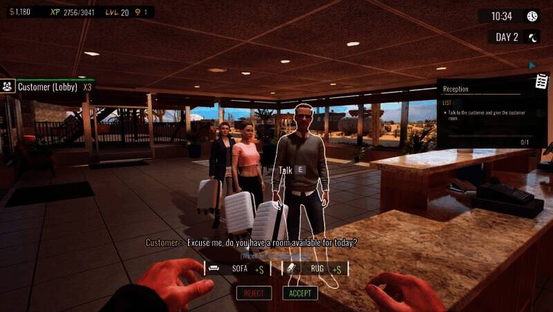 每位客人都有独立的行为逻辑和偏好,比如商务旅客更注重隐私和网络,家庭游客则需要有儿童娱乐设施。满意度实时反馈系统会通过客人的表情、评价和消费行为体现出来,推动玩家不断优化服务。