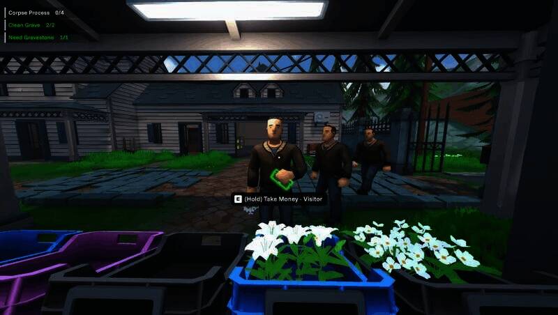 处理完尸体后,访客会定期回来探望亲人。你要保证坟墓干净完整,提供鲜花让他们满意。每次访客满意都会给予你宝贵奖励,助力业务顺利开展。