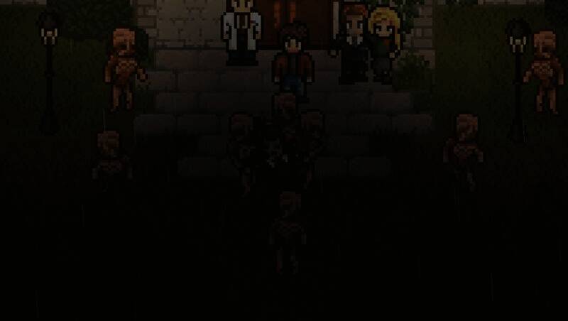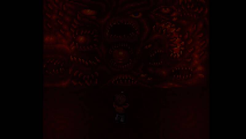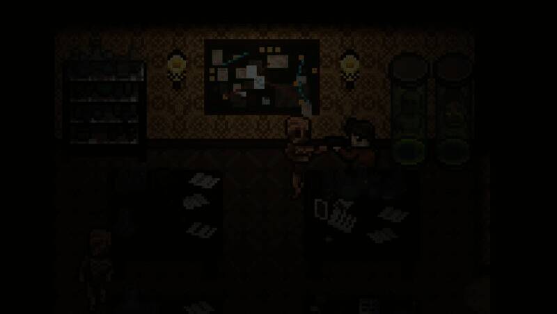 游戏采用低分辨率像素美术,以暗色调为主,搭配克苏鲁风格的怪物设计和场景细节,如血肉融合的墙壁、扭曲的宗教图腾。虽部分玩家认为像素风格会削弱恐怖感,但动态光影系统,如手电筒光影投射、幻觉中的色彩畸变,营造出压抑不安的视觉氛围。此外,角色立绘与过场动画采用AI辅助精细绘制,与像素场景对比鲜明,强化叙事张力。