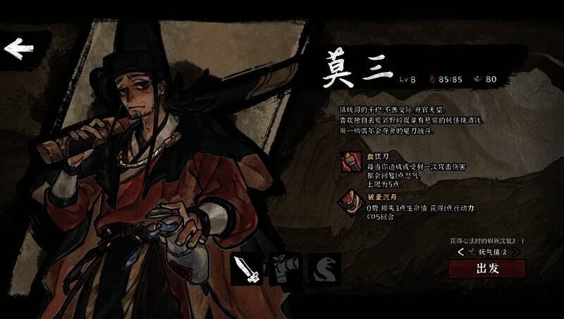 击败BOSS后,玩家可从随机的三种心法中挑选,像莫三的“汲血”回血、阿紫的毒伤增益等,结合卡牌能形成多样流派。