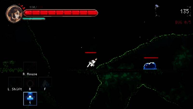 玩家以来未的视角试玩主角开发的2D横版动作游戏,在复古像素风格的关卡中战斗、收集素材,并及时报告发现的BUG。战斗系统注重策略性,需要搭配技能树与炼金系统来强化角色,普通攻击在面对后期高难度敌人时往往力不从心。此外,游戏还引入了DEBUG机制,玩家要通过战斗验证关卡设计,修复错误以提高游戏完成度,真实地还原了独立开发者的创作过程。
