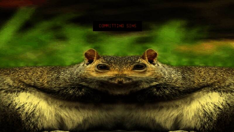 腐烂尸体的黏腻质感、松鼠被钉后扭曲的形态,以及抽象化的“森林邪灵”,均采用夸张的卡通化手法表现,既降低了视觉不适,又强化了荒诞基调。