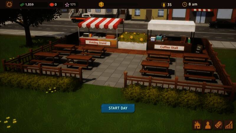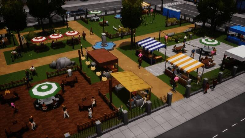 玩家能自由设计公园布局,从基础摊位到娱乐设施都可定制。随着公园等级提升,会解锁更多建筑风格和装饰元素,如异国美食摊位或现代用餐区。