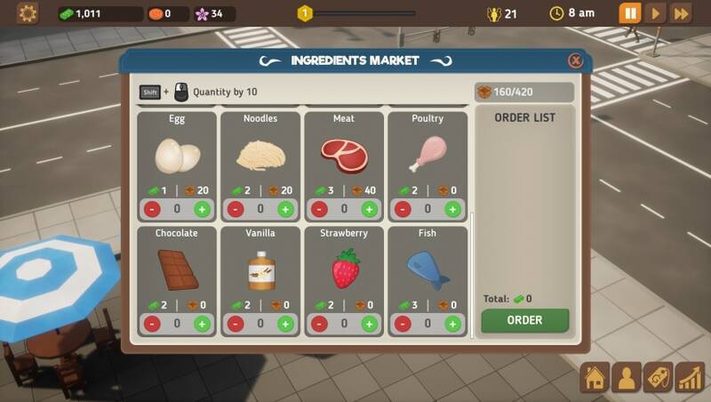 在充满活力的世界里,玩家作为美食公园的建造者与管理者,通过规划摊位、研发菜谱、招聘员工等操作,吸引各地顾客,将公园发展成享誉全球的“美食天堂”。