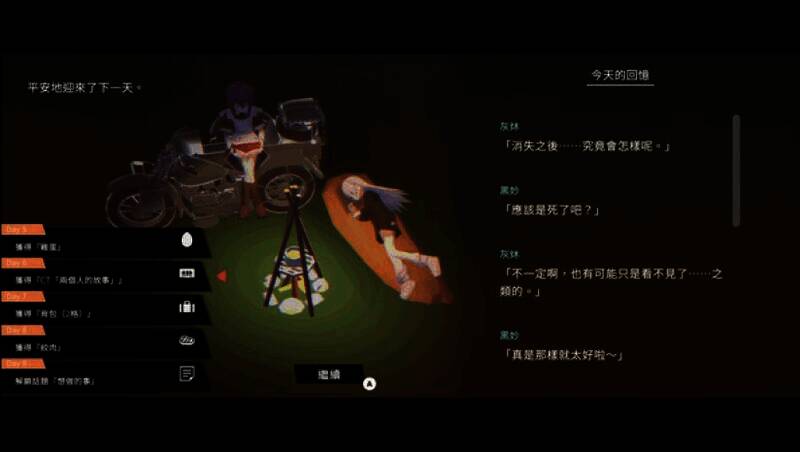 1、剧情随角色移动发展:多数游戏剧情以抵达目的地为发展条件,而该游戏剧情发生在摩旅路上。已读文本和里程数同步增长,停车时剧情不推进,边骑摩托边听两人谈话,故事自然渐入佳境。