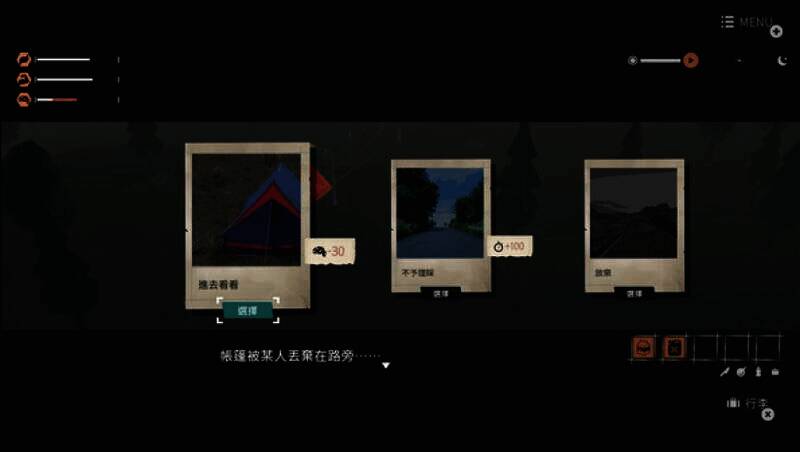 3、饱腹度与夜晚:“饱腹度”会在行驶中减少,可通过制作料理恢复包括饱腹度在内的能力值。旅行一段时间夜幕降临,午夜意味着旅途结束,要在之前找到过夜的空房间,也可通过难度设定让“饱腹度”等数值不被消耗。