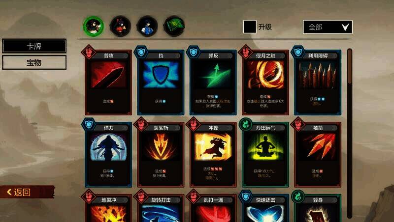218张卡牌与159件宝物可自由组合,攻击牌每回合限用1张,防御牌需预判敌方行动,技能与辅助牌是构建流派的核心。宝物如“杀意”可叠加暴击,“羽扇”能召唤子机协同作战。