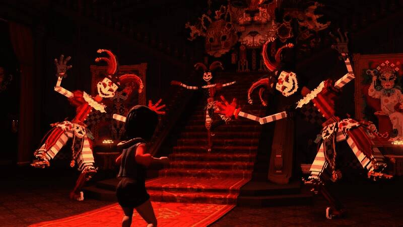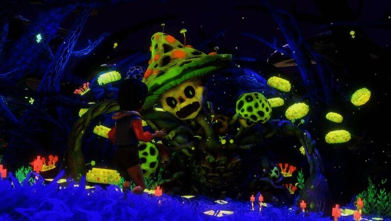 游戏用Unity引擎开发,高饱和度色彩与几何化建模,构建童趣与诡谲并存的视觉奇观。蘑菇森林用荧光粒子营造梦幻氛围,面具大厦以扭曲结构和视角切换强化解谜张力。战斗特效动态美感足,BOSS战环境破坏提升视觉冲击力。
