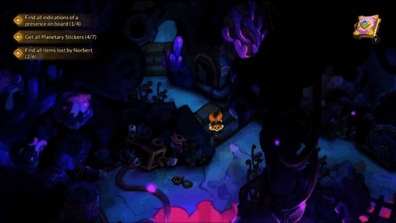 3、Tar的阴影:一种叫「Tar」的不祥神秘物质在银河系蔓延,威胁着皮洛探索的美丽世界。在旅程中,玩家要揭开Tar的起源,拯救被其腐蚀的行星。Holobook能暂时驱散Tar,让玩家深入探索并与受影响生物互动。