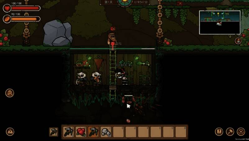 3、地下探索与扩张:挖掘进入地底,清除虫巢解锁区域,收集资源应对危险。