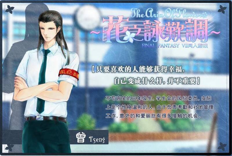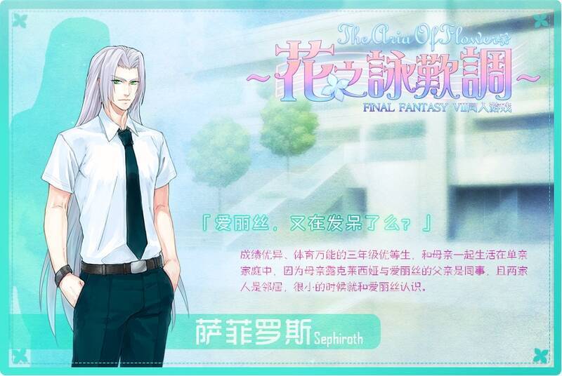这是一款最终幻想7乙女向同人文字游戏,设定在架空校园背景。玩家操控爱丽丝,与身边人互动,逐渐走进他们内心。游戏有扎克斯、萨菲罗斯、曾三位可攻略对象,初定3个结局。
