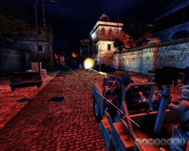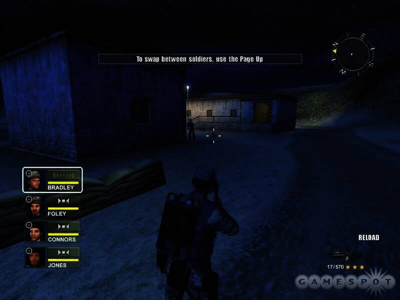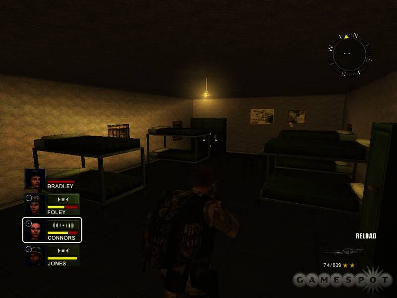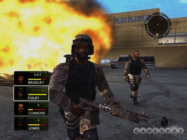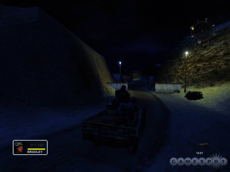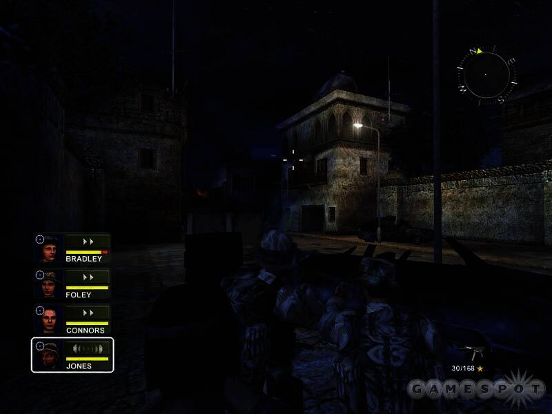 小分队冲进敌军军事重镇,遭炮弹袭击。从缺口沿管道进入三层大屋,任务是掩护直升机接走另一组队员。指令队友占据有利地形、补充装备弹药,歼灭来犯之敌,安全送走队友。从室内杀出,门外有两辆吉普车等候。
