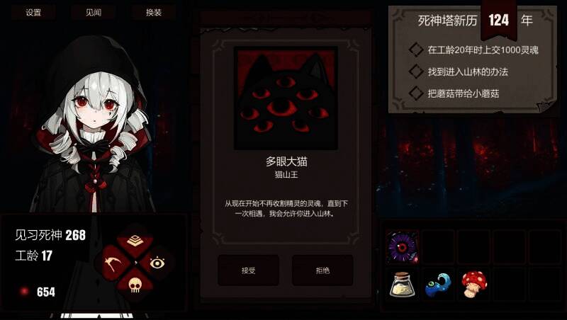 3、轻与重并存:在阴森神秘主题中融入采集、着装系统等轻松元素,打破沉重氛围,使游戏有趣又有深度。