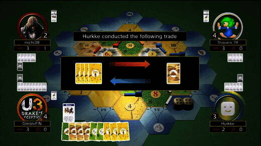 游戏建筑需用资源建造,资源不够可和其他玩家交易。若快胜利时没人愿交易,口才好说服对手则另当别论。也可用4个相同资源换想要的资源,在地图四周建筑占领港口,可用特殊比例兑换资源。