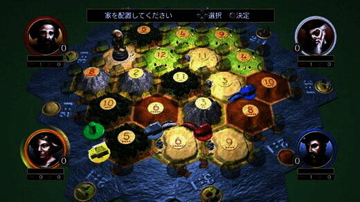 游戏以六边形资源格拼成棋盘,玩家可在六边形边角放置自己颜色的建筑,每个定居所代表1个积分,升级到城市后代表2个积分,同一边上只能放一个建筑。除初始两个建筑可在遵守规则下任意放置外,新增建筑需先修建道路。