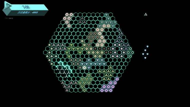 设置这三个限制后,玩家唯一的自由就是在六边形里拼图,而这拼图过程充满了各种可能性。在大六边形空白方块较多时,玩家可选择不同图案填入不同位置,完成消除的路径不止一条,这促使玩家不仅要完成消除,还要从三个图案中挑选可能达到最优效果的图案来填入。