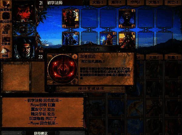 游戏有单人角斗、战役、竞技场等多种模式。各模式开始时,玩家能从战斗祭祀、邪教徒等职业中自由选,单人角斗还能自定义对手职业。玩家以60点生命值开启角斗,目标是让对手生命值归零。战斗可召唤五种属性卡牌或魔法,能量值决定召唤威力,每回合能量增1点。初期没策略可点“获得建议”。