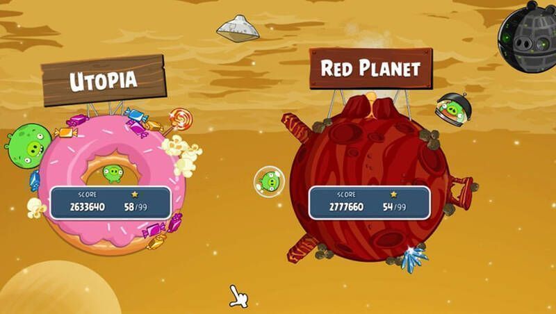 在新版的游戏中,物理特性将会有所不同——射出的小鸟在没有重力影响的时候,轨迹是完全直线的;而只要有小行星等重力吸引,小鸟的轨迹就会发生变化,想要在《Angry Birds Space》中过关斩将的话,就必须要掌握好这一简单的原则。