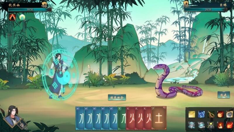 游戏中的卡牌战斗是核心玩法之一。战斗以“卡牌式”回合制进行,卡牌代表天地五行灵气。玩家需收集功法和神通组建自己的build,通过不同的五行灵气牌排列组合打出法术。战斗中有策略性,五行相生相克能产生不同伤害与combo效果,各门派还有独特的套路调配,如防御叠毒、御剑攒剑气等。武器也类似炉石传说英雄技能,主动使用可使伤害质变。