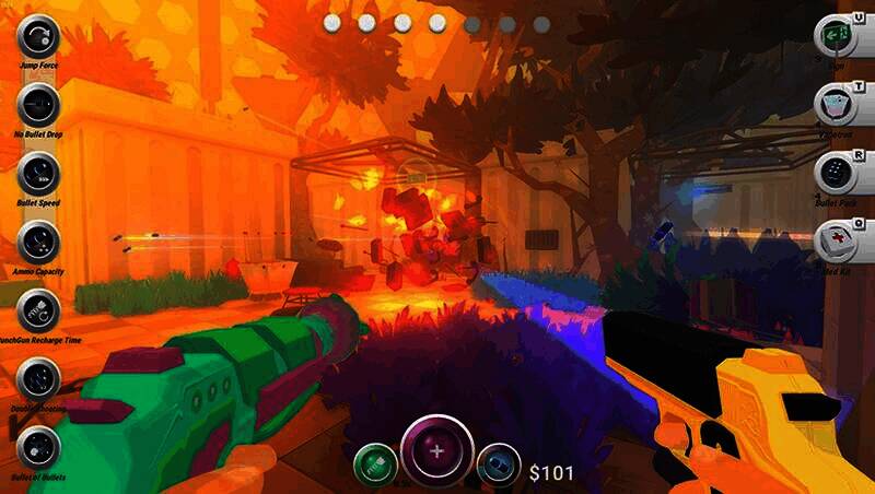 多数物体都进行了物理模拟。子弹有重量和弹道,被重型敌人撞击会被击飞,撞到墙还会反弹。