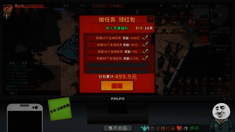 游戏以黑色幽默的方式,对中国网游文化中的氪金元素、套路以及游戏与现实的关系进行了深刻的讽刺和反思,让玩家在享受游戏乐趣的同时,对现实中的网游现象有更深入的思考。