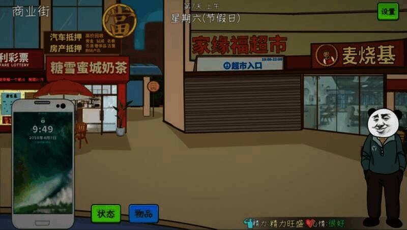 游戏采用独特画风,主角的脸会随剧情和对话变换成不同的熊猫头表情包,增添了游戏的趣味性和搞笑氛围。